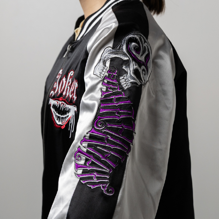 • 背面のジョーカーがかっこいいファンにはたまらないスカジャンです。