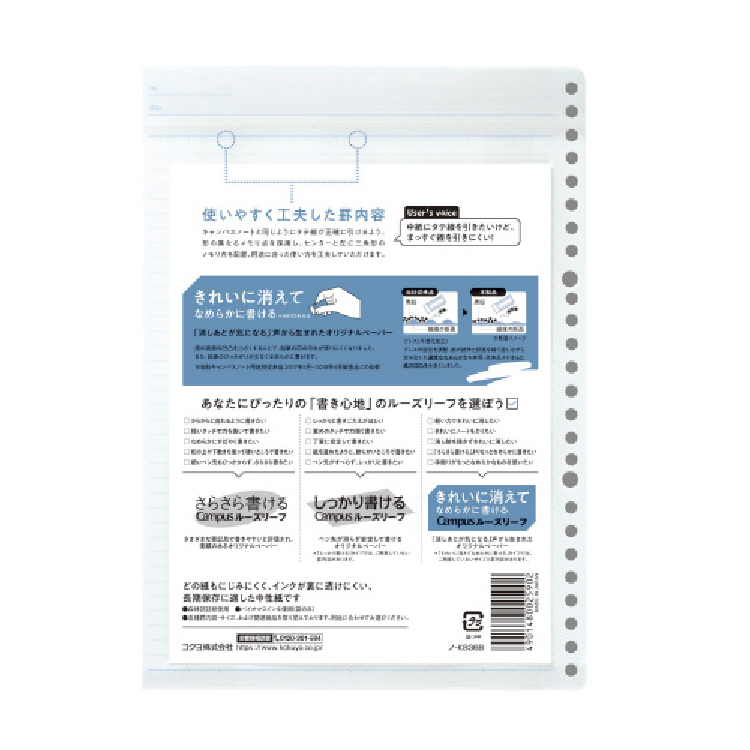- にじみにくく、インクが裏に透けにくいコクヨオリジナル原紙を使用しています。