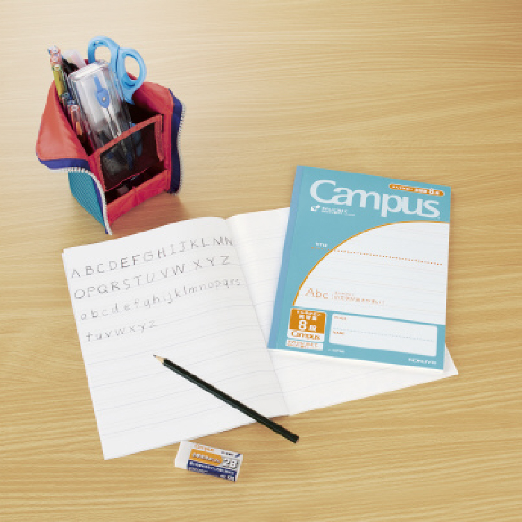 • 小学校の主要な英語教科書に合わせた2:3:2の罫線間比率で小文字が大きく書ける