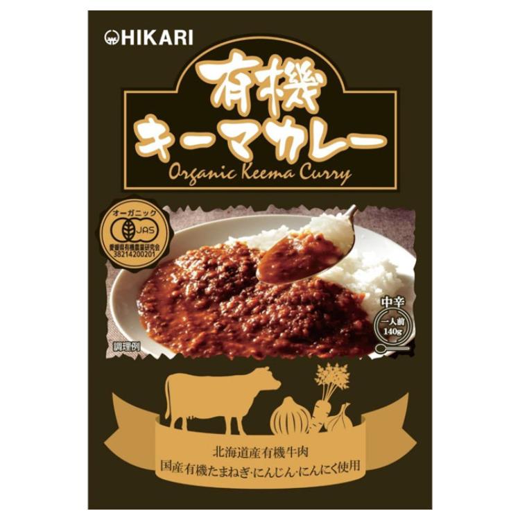 - 北海道産の有機牛肉を使用し、国産有機たまねぎ・にんじん・にんにくやこだわりのスパイスと一緒に煮込んだ、有機キーマカレー