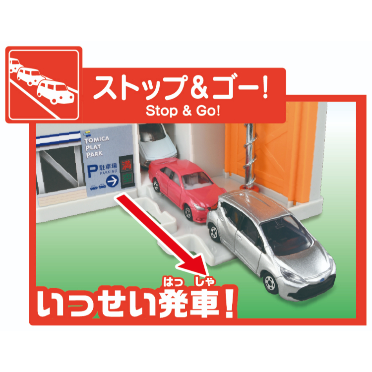 - 人気のトミカ一斉発車遊びも楽しめます。