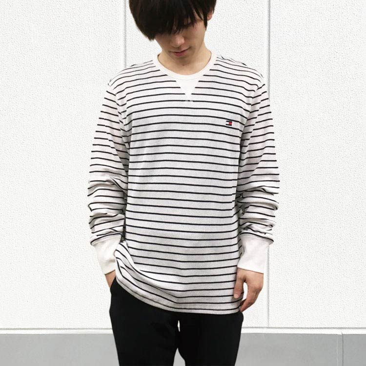 【TOMMY HILFIGER/トミーヒルフィガー】ワンポイント刺繍サーマルロングスリーブTシャツ ホワイトマルチ M