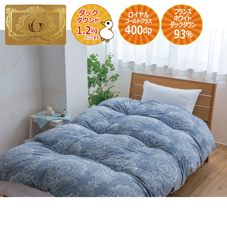 [冬の寝具フェアー][3]羽毛掛け布団 フランスホワイトダックダウン93% フェルン シングルロング ブルー