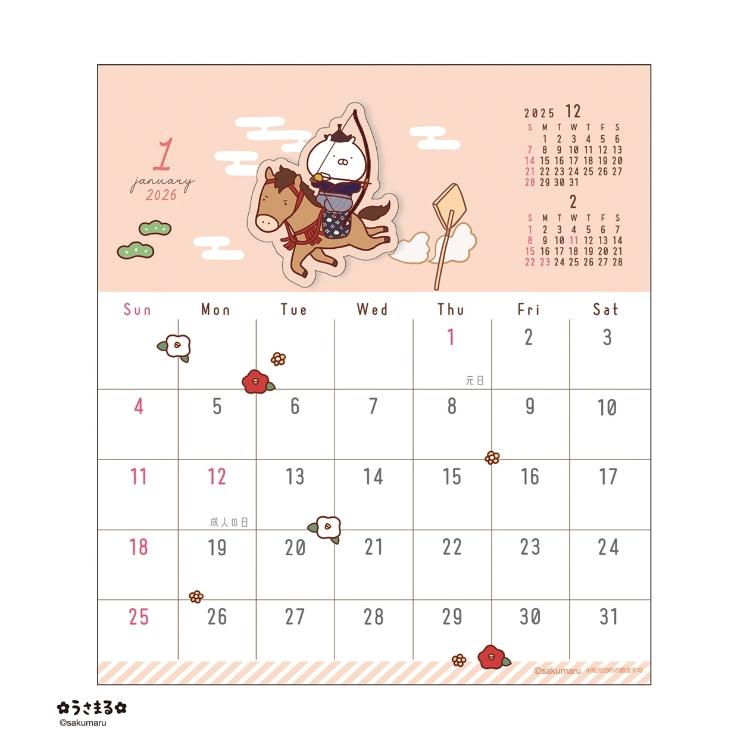 【2026年カレンダー・手帳】APJ sakumaru「うさまる」/LINEハンドメイド卓上カレンダー