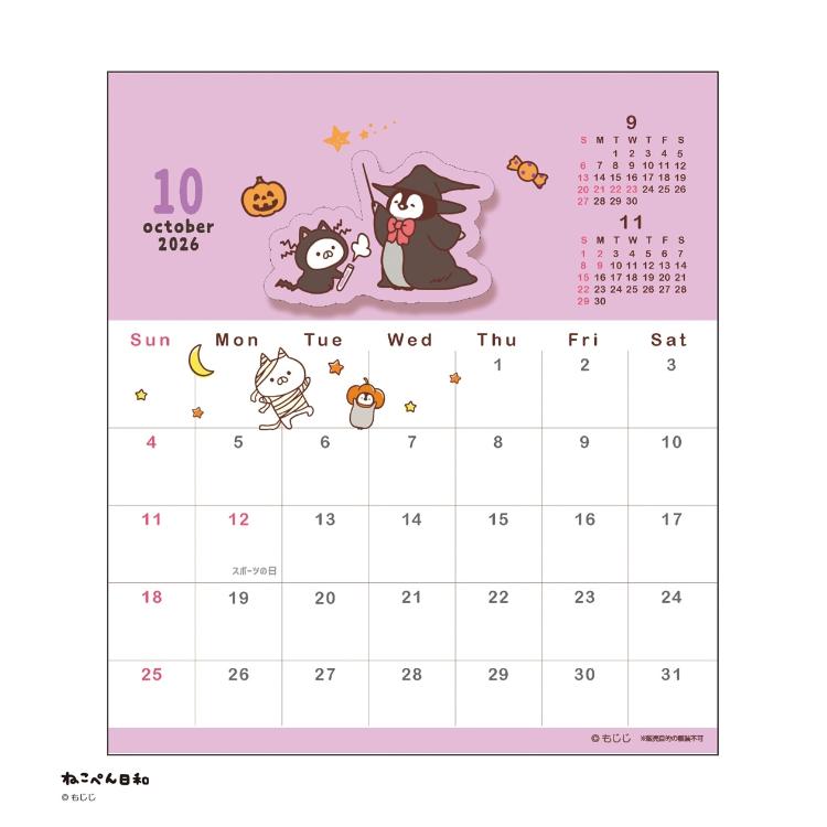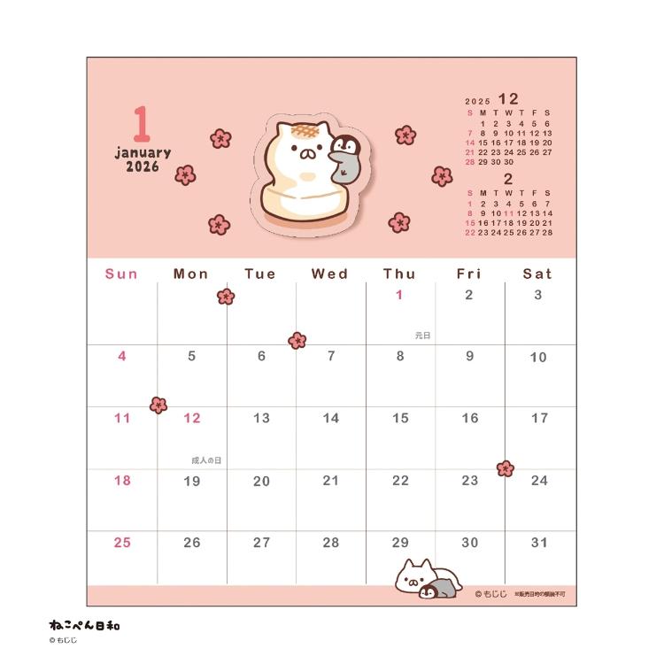 【2026年カレンダー・手帳】APJ もじじ「ねこぺん日和」/LINEハンドメイド卓上カレンダー
