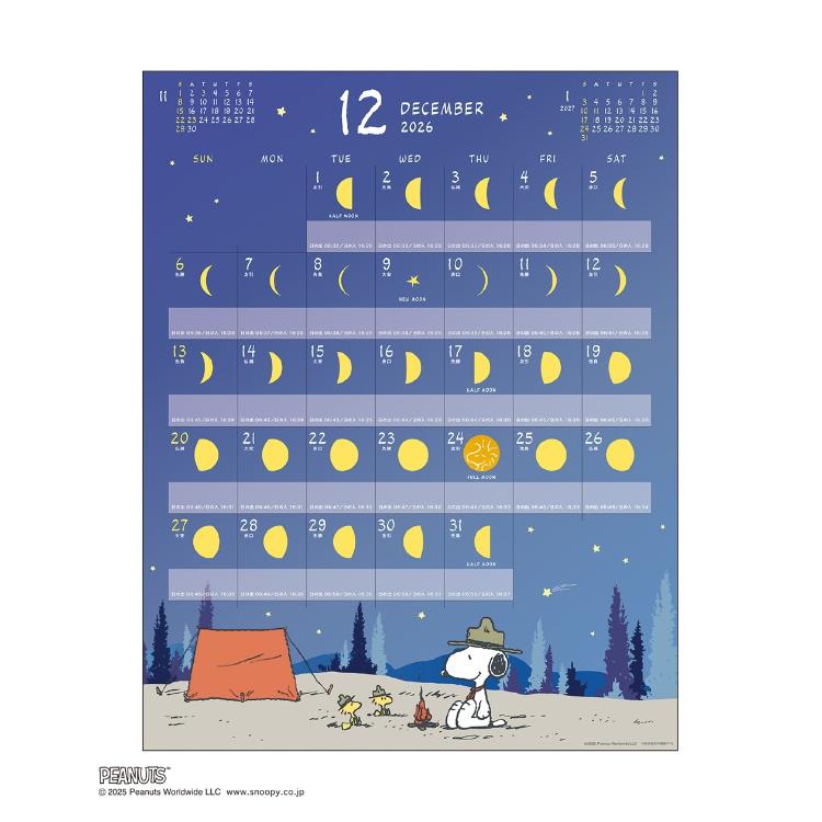 - 満月の日にはウッドストックのお月さまパーツがついた壁掛けカレンダーです。