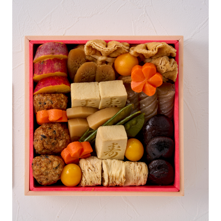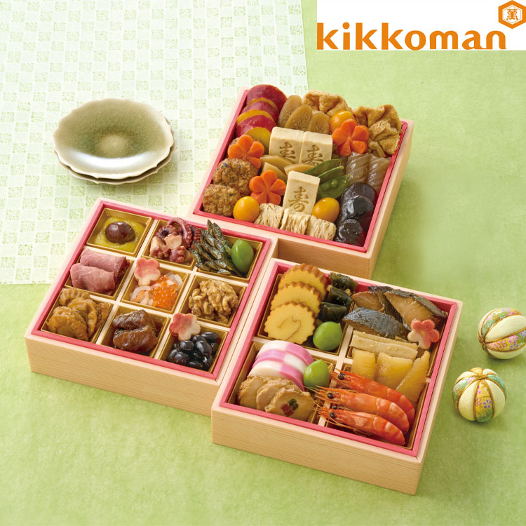 - 食の健康志向が高まる中、キッコーマン特選丸大豆減塩しょうゆを使用した減塩おせちです。