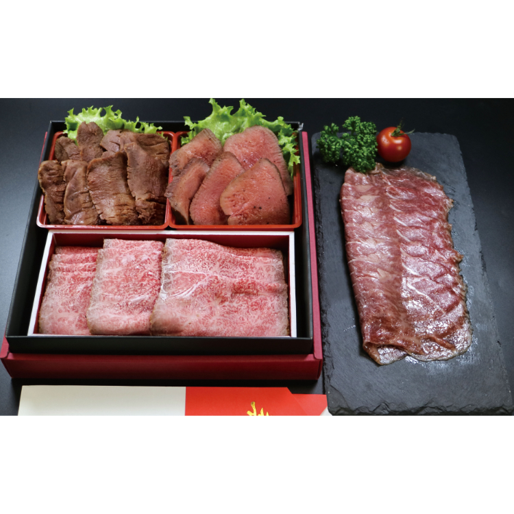 - 創業50有余年の仙台牛老舗が作る、最高級A5ランク仙台牛のローストビーフと、牛たんを詰合せた肉おせちです。