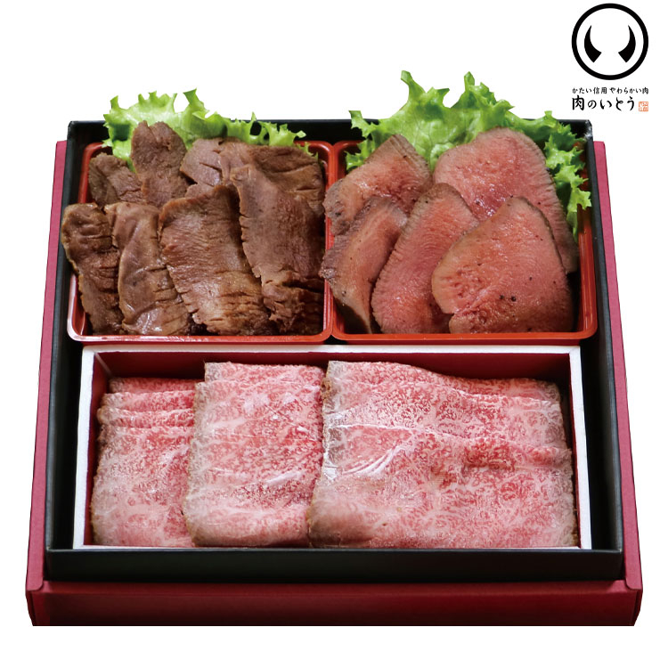 (一の重)肉厚牛たん塩焼130g、牛たんローストビーフ130g、仙台牛ローストビーフ200g、ローストビーフソース20g×2