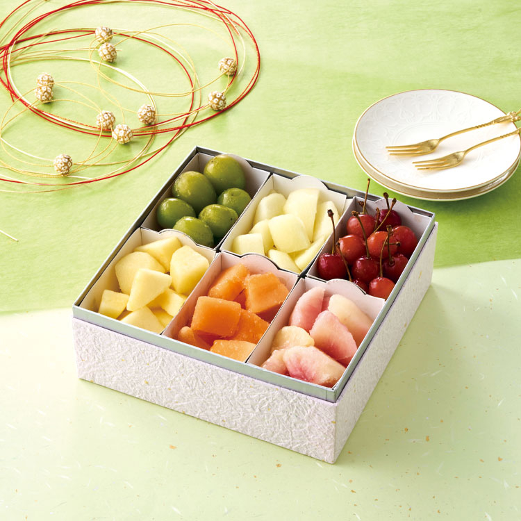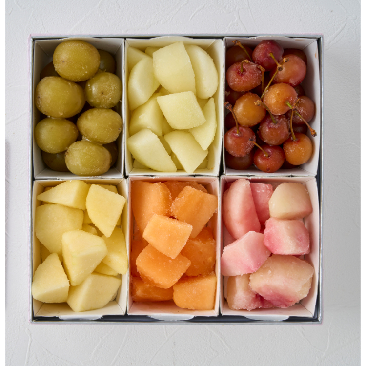 • シャーベット感覚で楽しめる冷凍フルーツをお重に詰合せました。