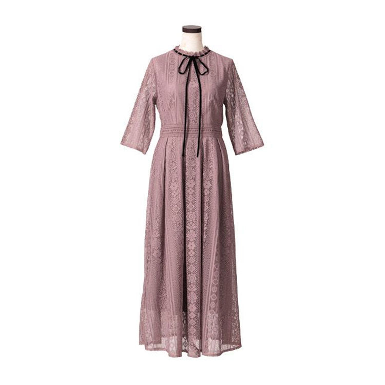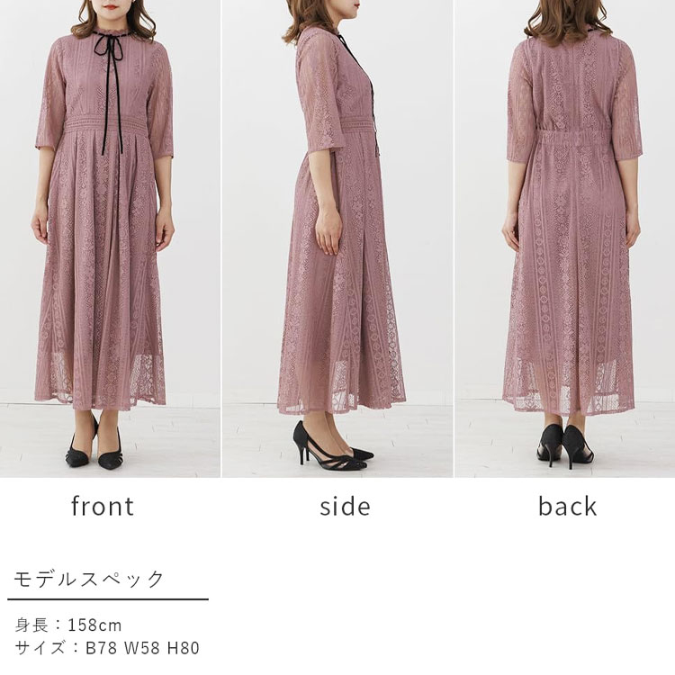 • 重くなりがちなロングドレスですが、袖と裾の透け感で軽やかな印象に。