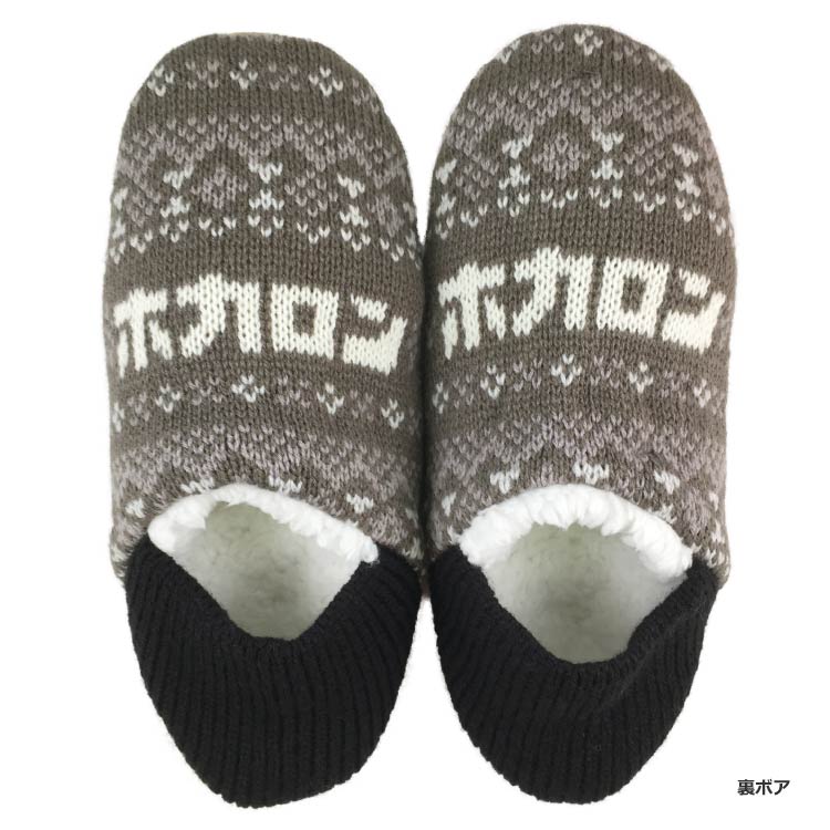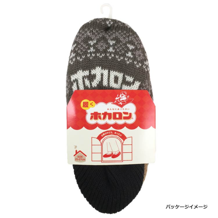 【履くホカロン】レトロルームシューズ フェアアイル柄 25-27cm チャコールグレー