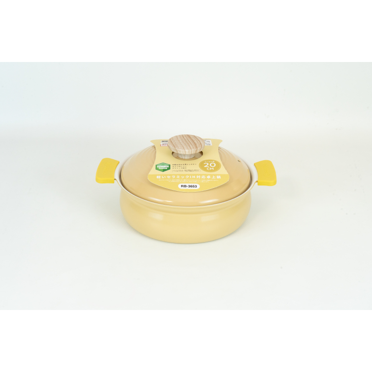 軽いセラミック IH対応卓上鍋 20cm イエロー