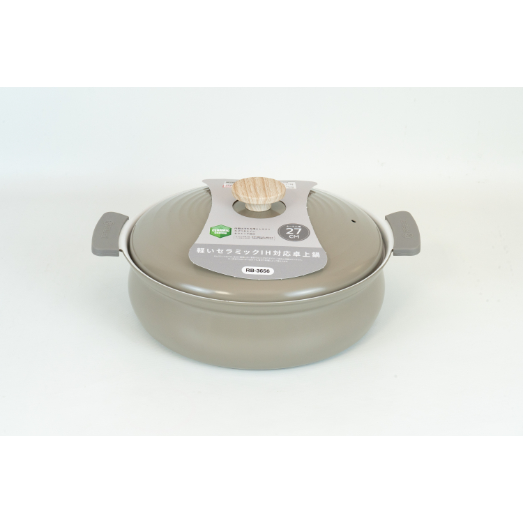 軽いセラミック IH対応卓上鍋 27cm グレー