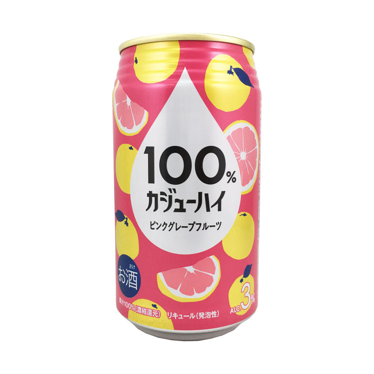 【酒販売】100%カジューハイ ピンクグレープフルーツ 缶 340ml