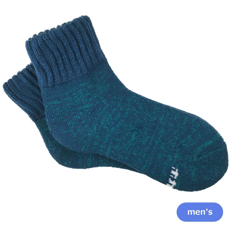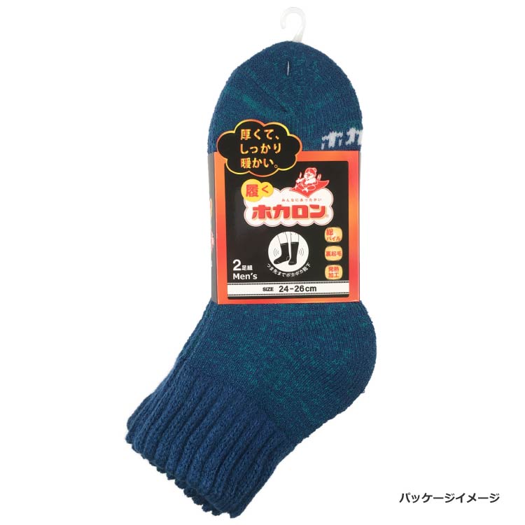 【履くホカロン】靴下 総パイル裏起毛 ショート丈 2足組 26-28cm ブルー