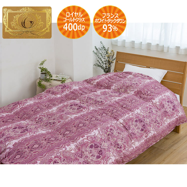羽毛掛け布団 フランス産ホワイトダックダウン93% エタンセル ダブルロング ピンク