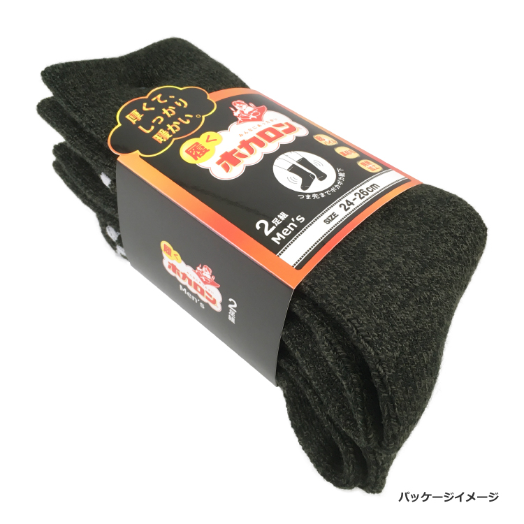 【履くホカロン】総パイル裏起毛クルー丈 2足組 24-26cm ダークグリーン