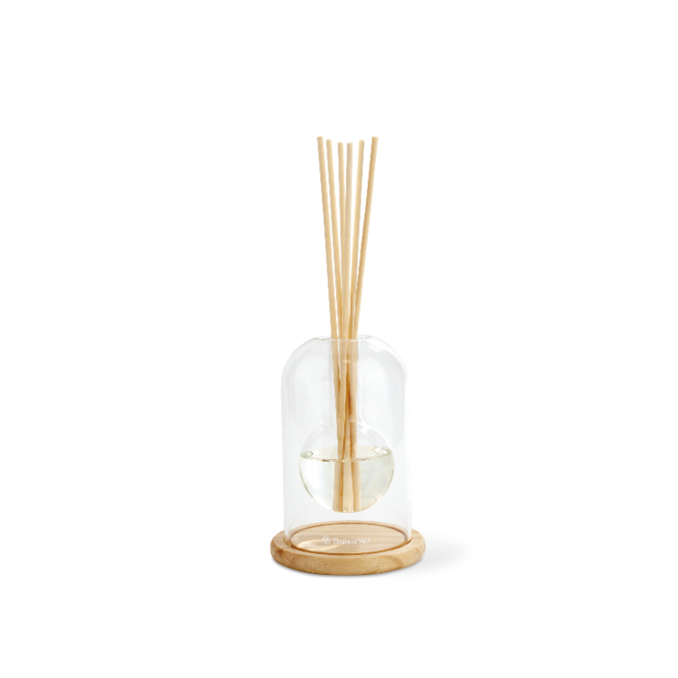 - まるでガラスベースが浮遊しているような二重層のフラスコ型ガラスが目を引くリードディフューザーです。