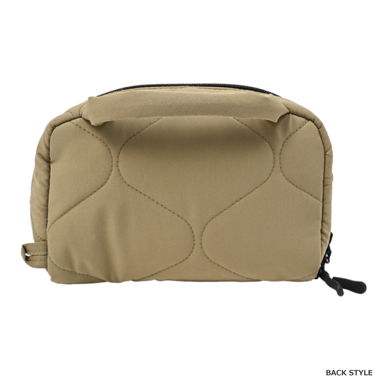 • 十分なサイズ感に加え、はっ水加工を施した生地を使用しているので、水回りのアイテムやトラベル用の荷物を小分けに収納するのにも最適です。