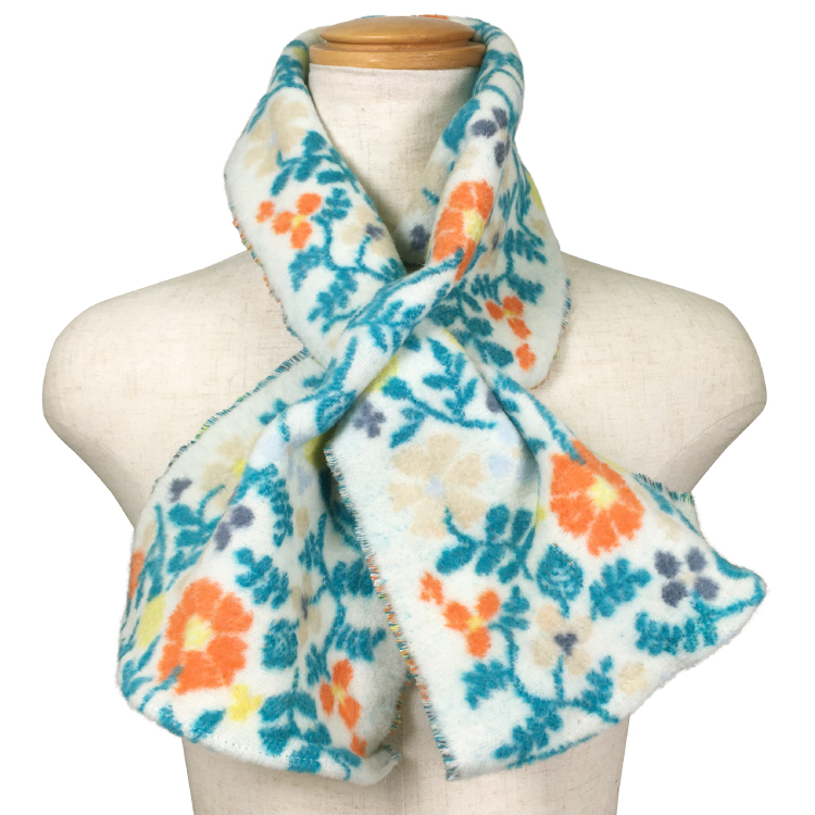 【RHYTHM BOX】リズムボックス フランス製 差し込みマフラー 花柄B アイボリー