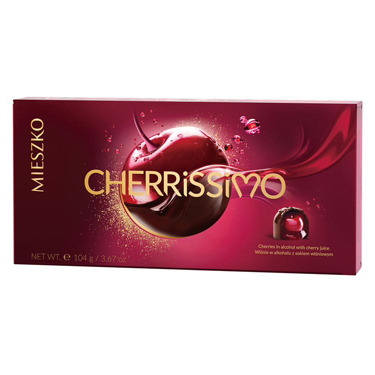 - お酒に漬けたチェリーとチェリージュースをダークチョコレートで包んだリカーチョコレート。