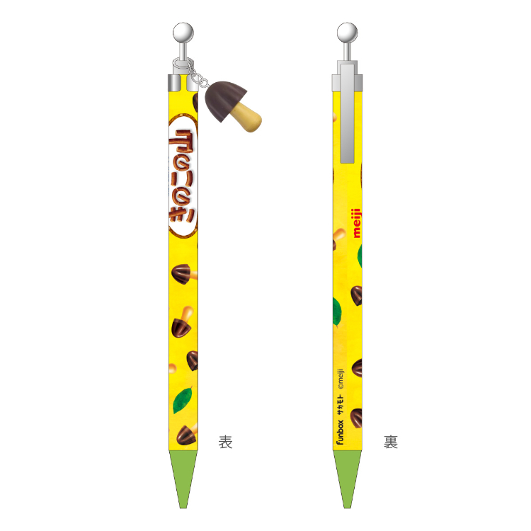 - お菓子の「きのこの山」柄のマスコット付きシャープペンシル。