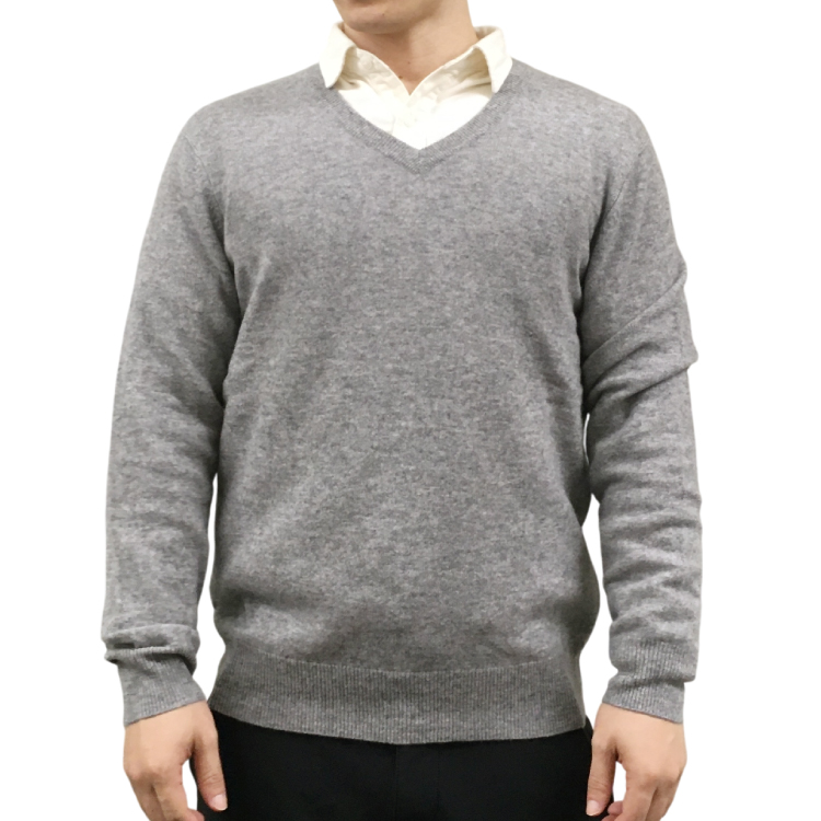 【RHYTHM BOX】リズムボックス カシミヤ100% Vネックセーター ライトグレー M