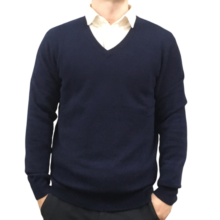 【RHYTHM BOX】リズムボックス カシミヤ100% Vネックセーター ネイビー M