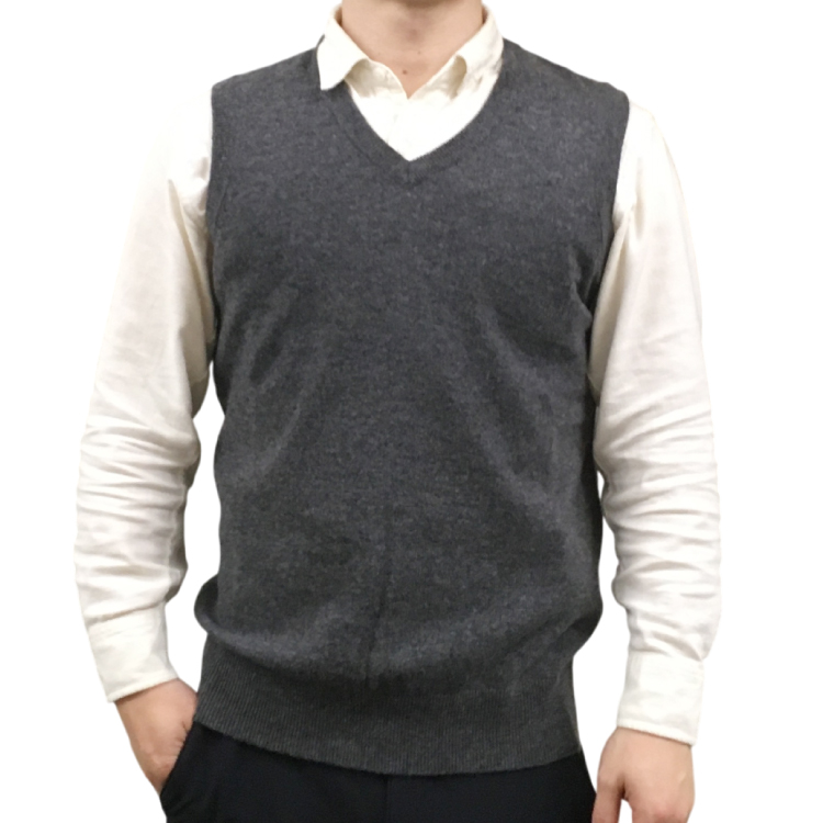 【RHYTHM BOX】リズムボックス カシミヤ100% Vネックベスト チャコール M