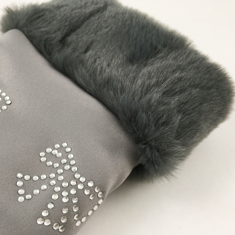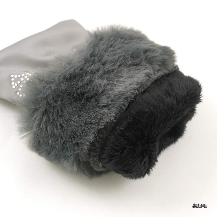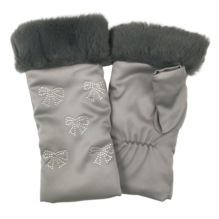 【RHYTHM BOX】リズムボックス 手袋 ハンドウォーマー リボンラインストーン グレー