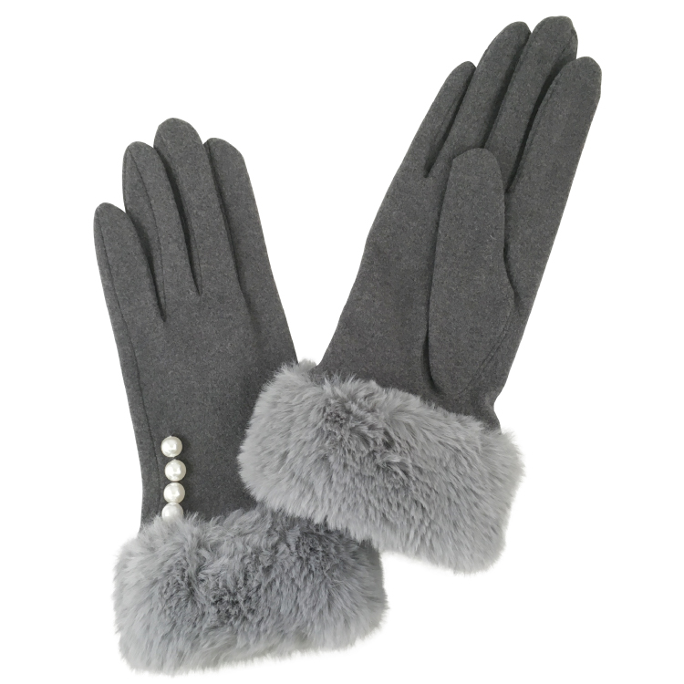 【RHYTHM BOX】リズムボックス 手袋 パール付き ライトグレー