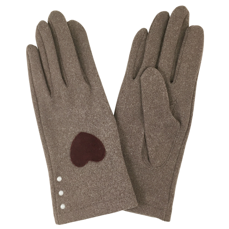 【RHYTHM BOX】リズムボックス 手袋 ハートアップリケ ブラウン