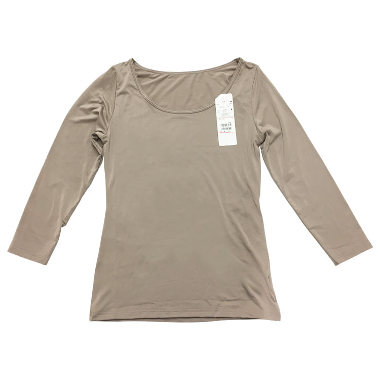 [ブラックフライデー]婦人柔らか裏起毛インナー ラウンドネック8分袖 モカ LL
