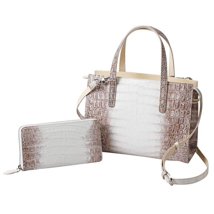 - 美しいホワイトカラーの希少素材ヒマラヤクロコダイルを使用した高級アイテムの2点セット