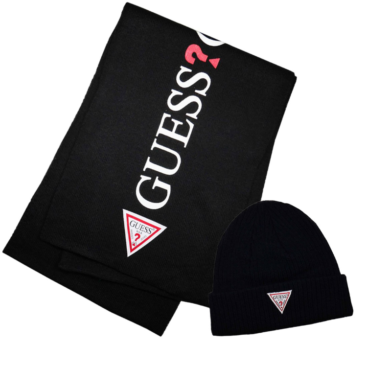 [ネット限定!福袋Sale]〔GUESS〕ストール・ニット帽セット①ストールBK×ニット帽NV