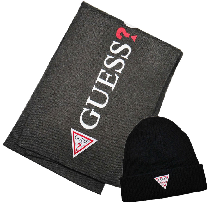 [ネット限定!福袋Sale]〔GUESS〕ストール・ニット帽セット④ストールGY×ニット帽BK