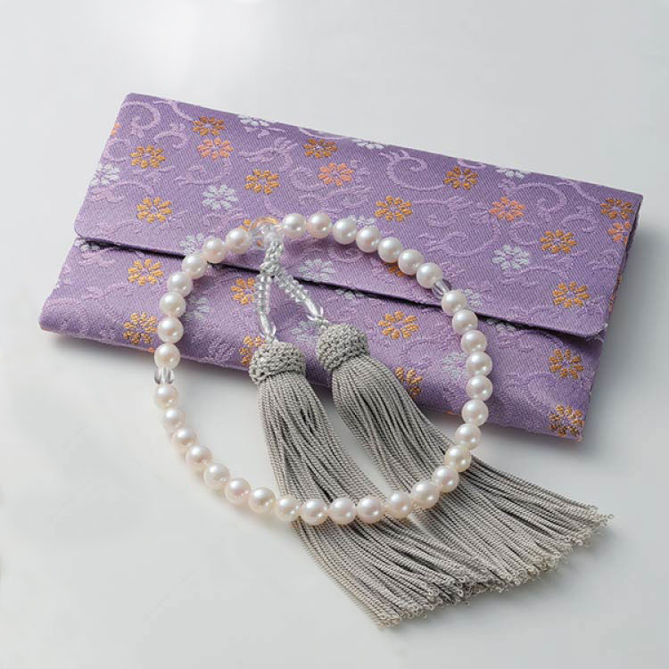 あこや真珠念珠7-7.5mm 正絹房(グレ-)