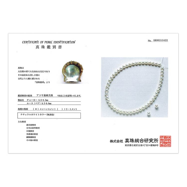 ネックレス8-8.5mm鑑別書付(真珠総合研究所)