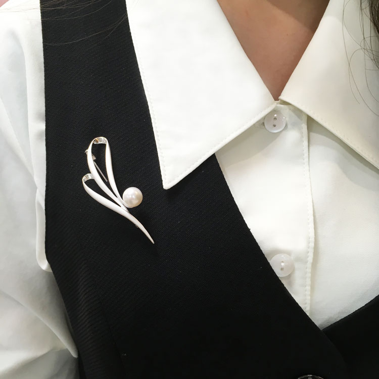 - 大粒の9mmサイズのあこや真珠を使ったブローチはフォーマルでもカジュアルでも使用可能