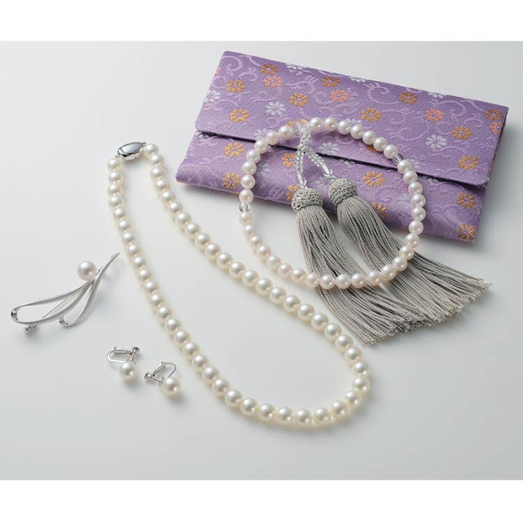 人気のナチュラルホワイトカラーあこや真珠2点セットが数量限定超特価!さらにパールブローチとパール念珠がセットになった豪華な福袋です。
