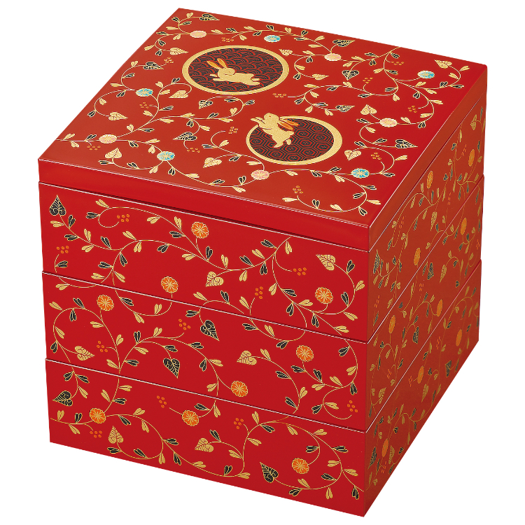 • やわらかな表情のうさぎ柄と、縁起の良い唐草文様を組み合わせた「うさぎ唐草 5.0 三段重」。