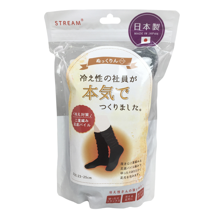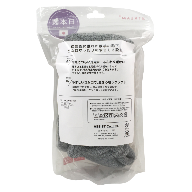 【ぬっくりん】冷え性の社員が本気でつくりました。 二重編み 足底パイル ハイソックス グレー