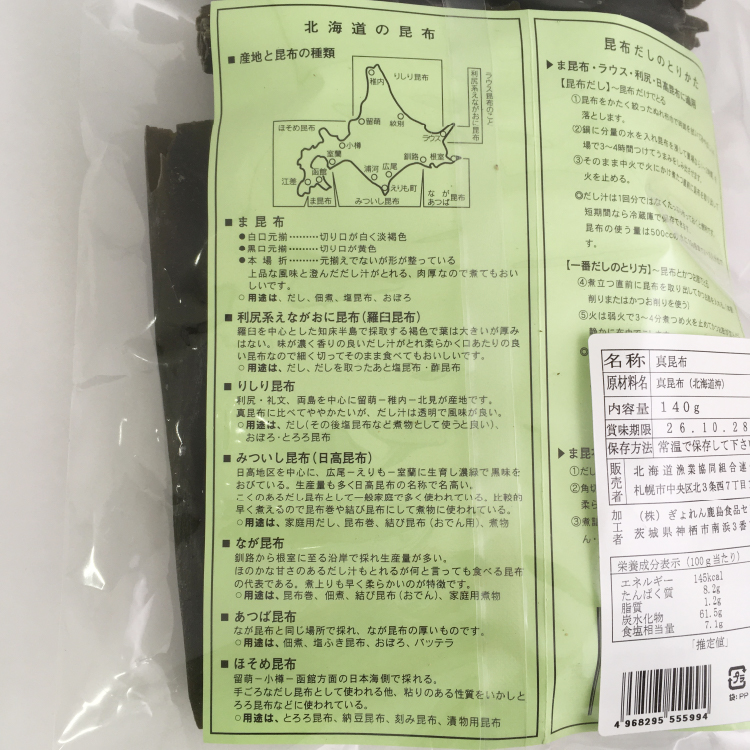 - 原材料:真昆布(北海道沖)