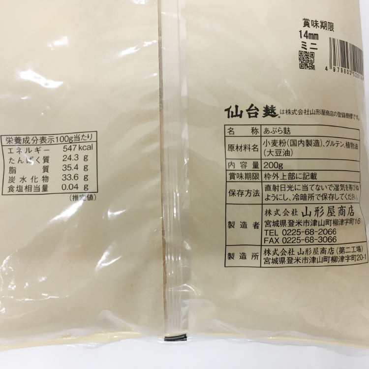 - 原材料:小麦粉(国内製造)、グルテン、植物油(大豆油)