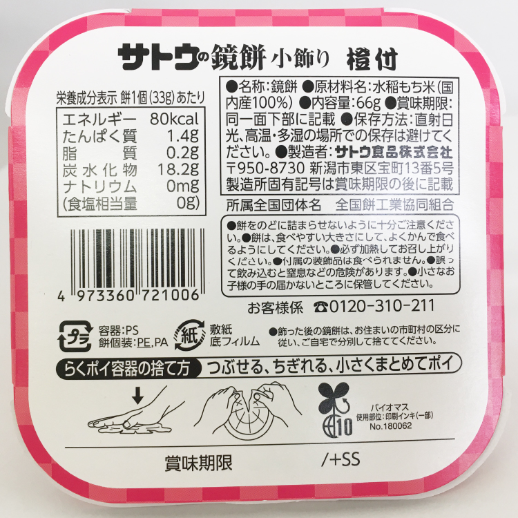 サトウの鏡餅 福餅入り小飾り 橙付き(66g)