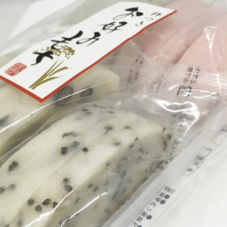 豆もち:水稲もち米(国内産)、黒大豆(北海道産、遺伝子組換えでない)、食塩