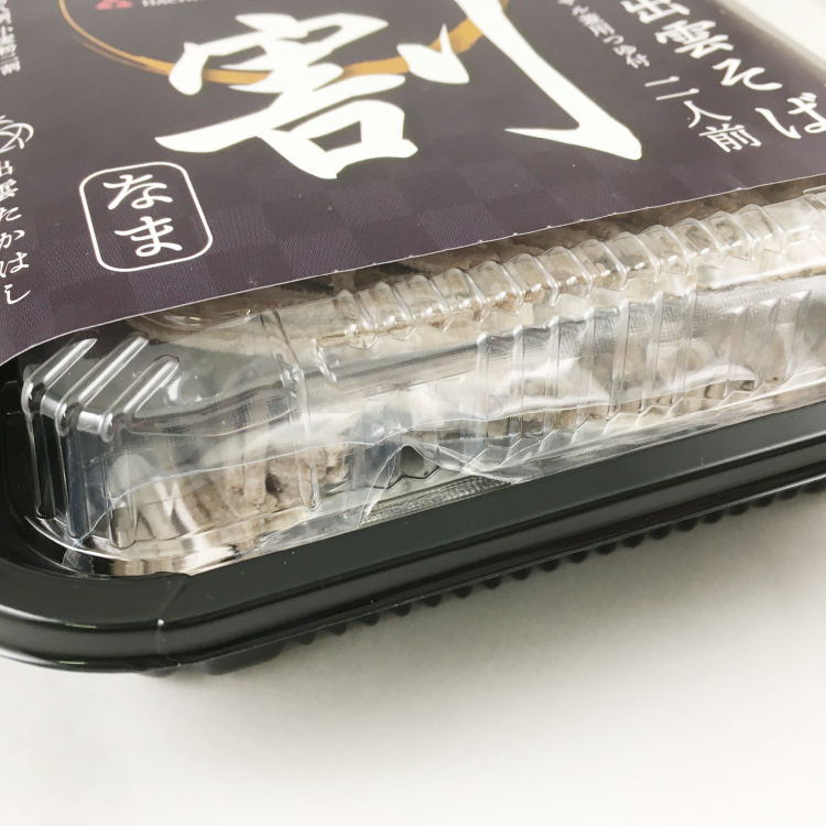 - 原材料:めん[そば粉(国内製造)、小麦粉、食塩/酸味料、増粘多糖類、加工でん粉(打粉として)]