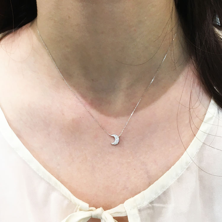 - 三日月型に12石のダイヤモンドの輝き。