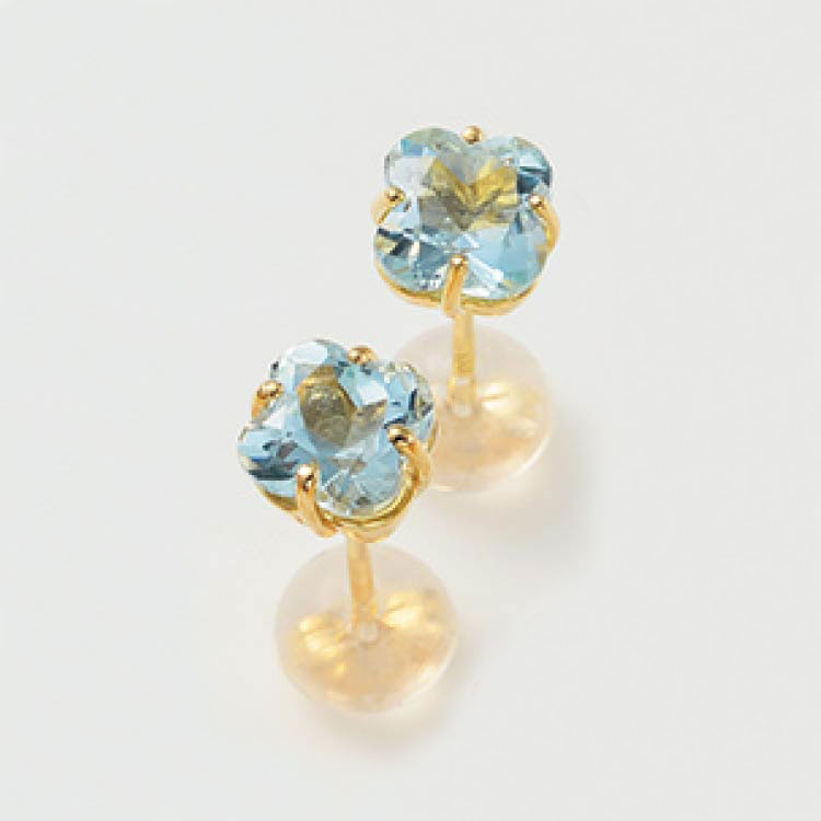 - ぷっくりお花型のブルートパーズは淡いブルーの色合いが優しい印象に。かわいらしいデザインです。